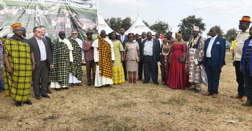 It was Sunday November 23rd, 2025. The rising sun begins to shine over Karamoja plains with a brilliance that seemed to bless the day. From a distance one can hear the rattling of the men wearing foot rattlers and women in flowing, patterned wraps moving in rhythm mingling in the wind at Losilang Parish Kotido Municipality in Kotido District as they celebrate a new dawn of hope, the first ever University in Karamoja sub region; Karamoja Peace and Technology University (KAPATU).